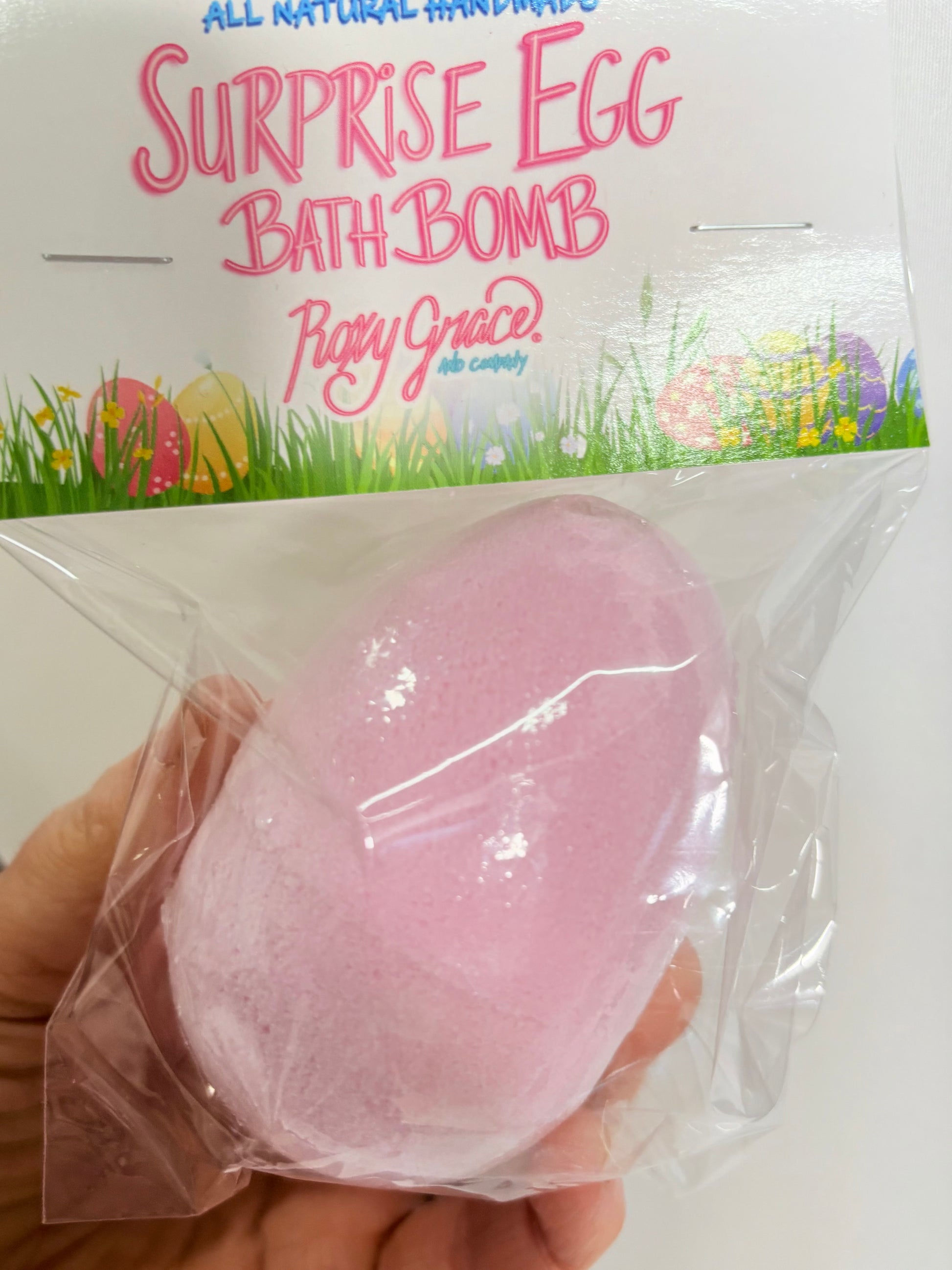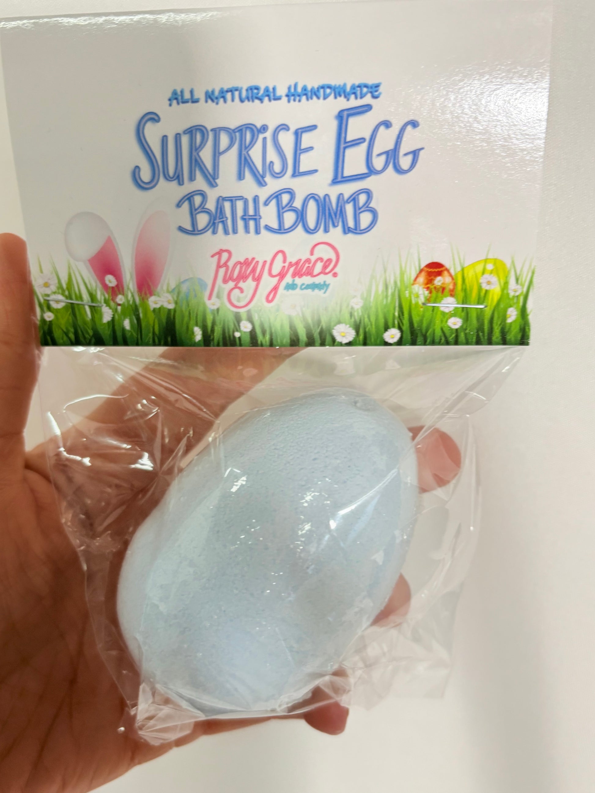 Surprise egg bath bomb comes in colors pink and blue