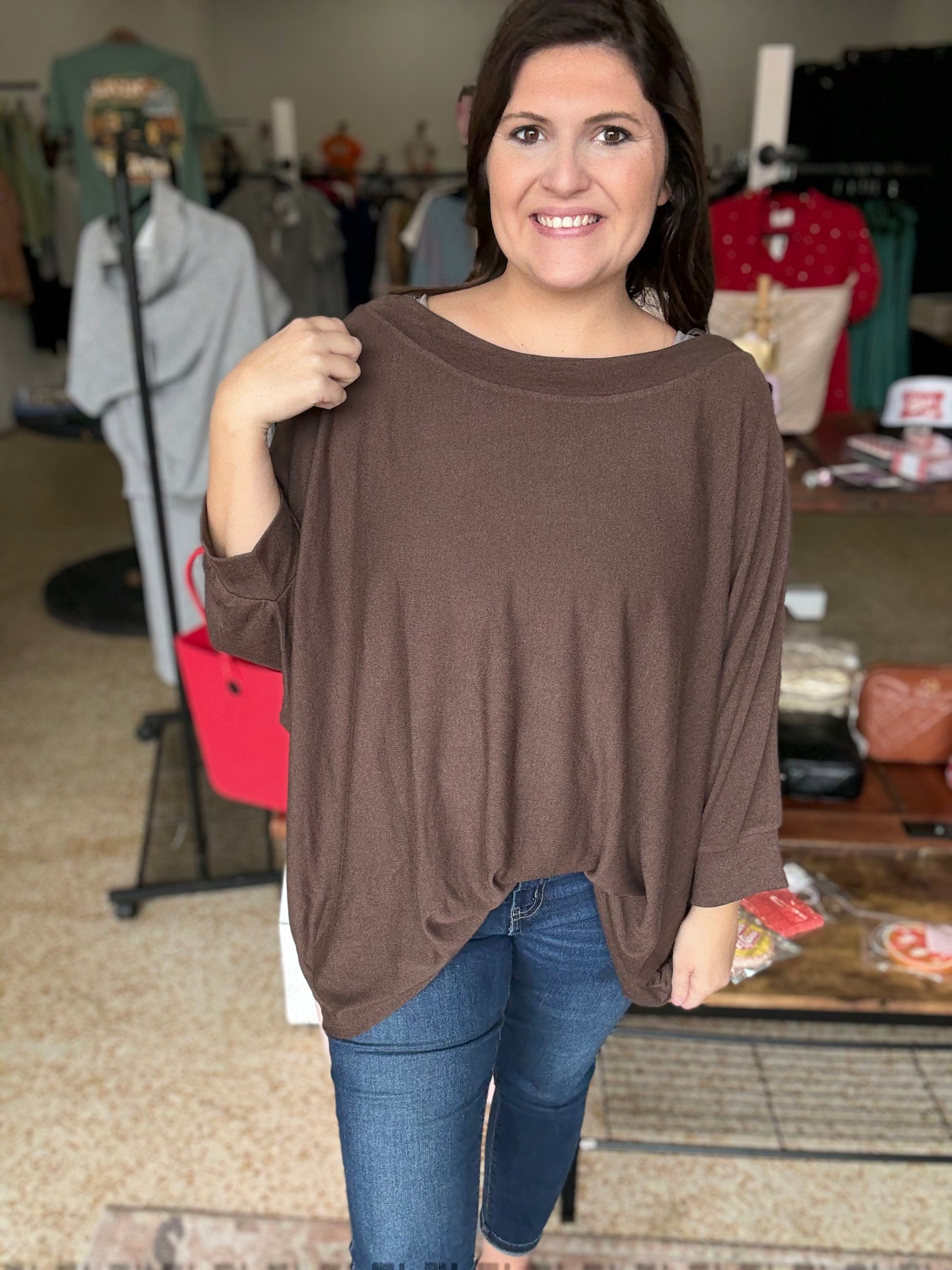 Light hacci Top comes in 2 colors chocolate and purple
