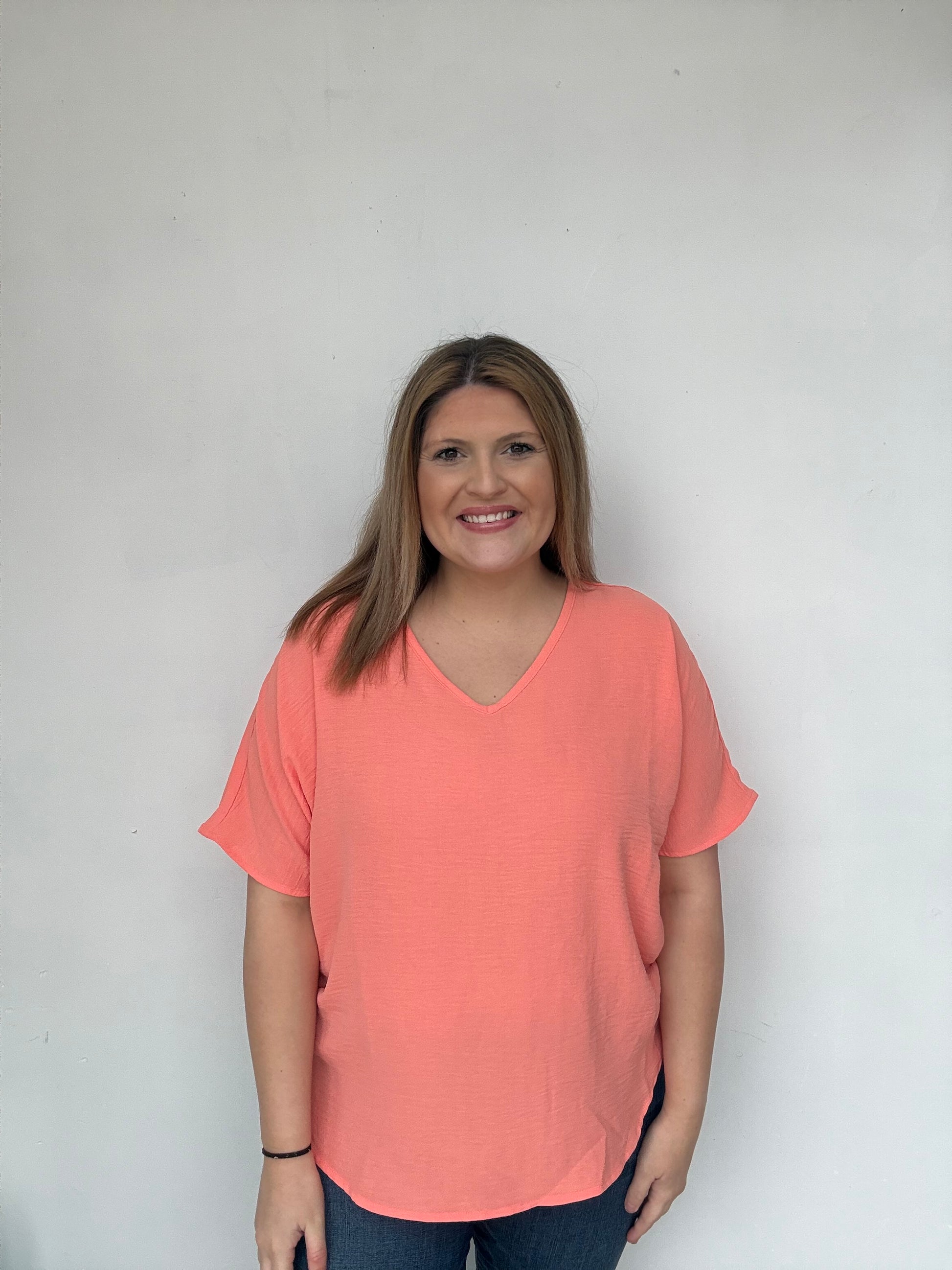 Basic v neck top comes in blue and coral