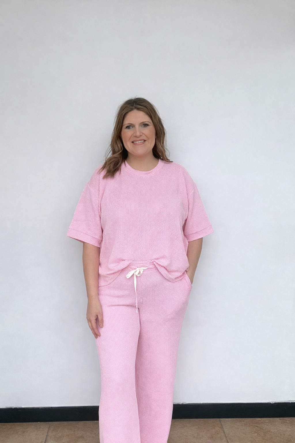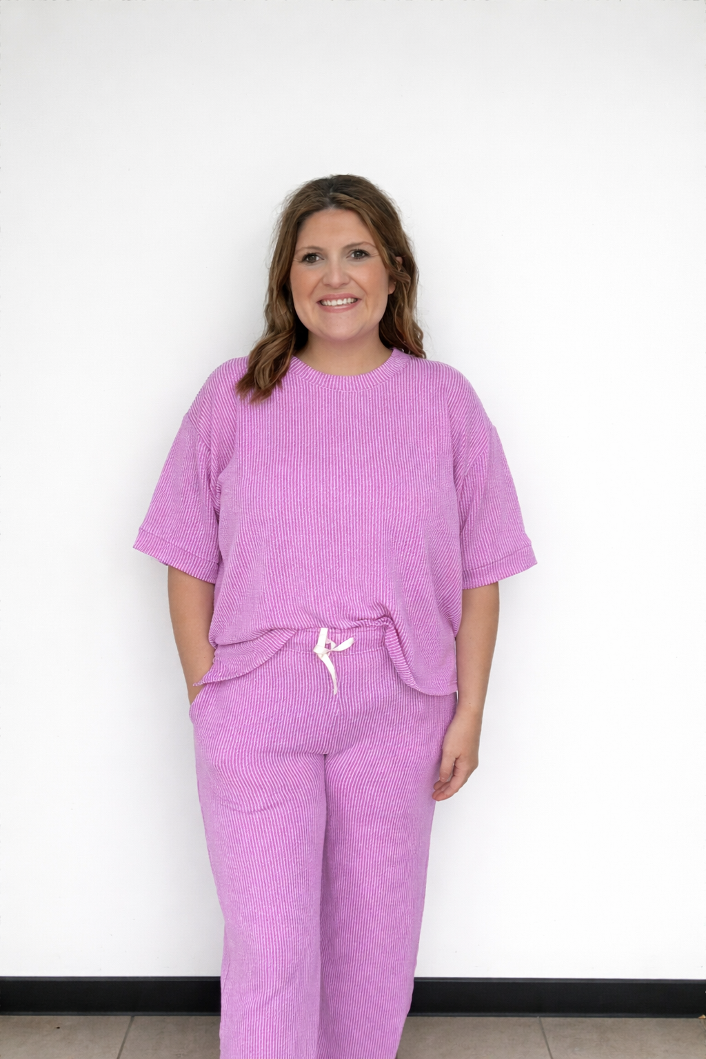 Ribbed pants and matching top set comes in