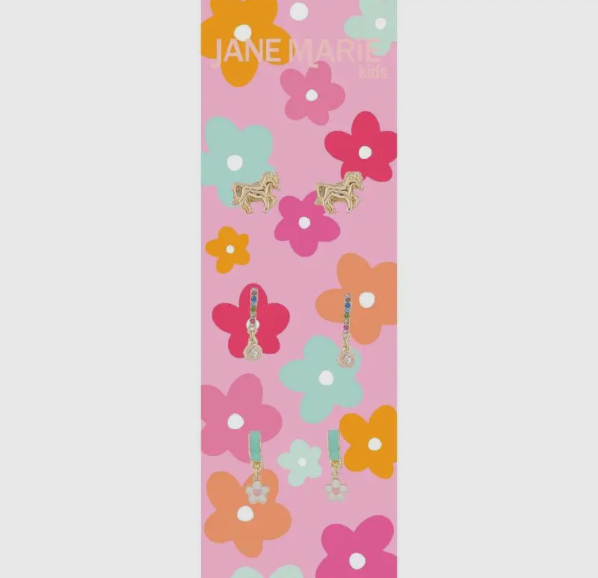 Kids Set of 3, Horse, Hoop, Teal Hoop with Flower